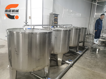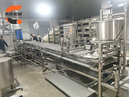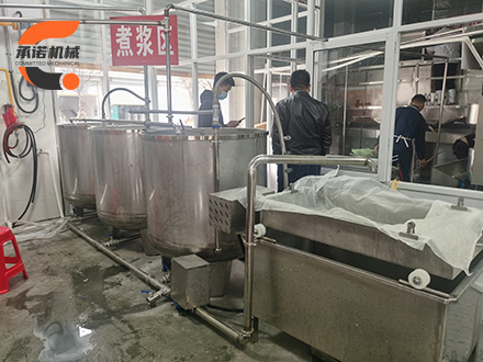 豐縣天賜豆制品加工廠購置了日加工5000斤的整套設備,自動浸泡,三聯磨漿機組,煮漿桶,熟漿篩,點漿桶,6米豆腐皮機生產線,雙壓機,雙剝皮機,攤涼線,購機我們提供了上門安裝,技術培訓服務。