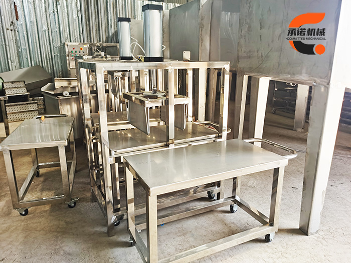 豆腐皮切皮機是大型豆腐皮機配套設備,一般大型豆腐皮機做的豆腐皮尺寸較大,因市場需要切成小張,承諾豆腐皮機廠家設計了這款氣動切皮機,整理好的豆腐皮,推入切皮機,根據設定,切成想要的小尺寸,機器簡單耐用。