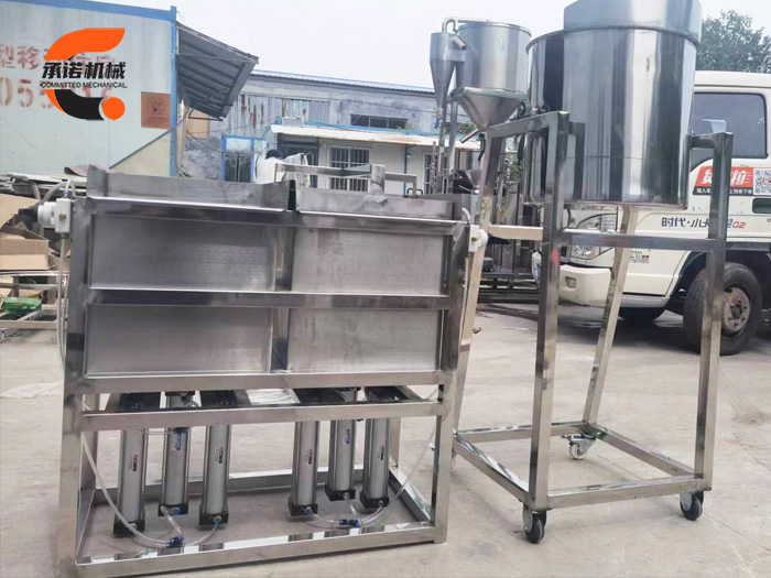 水豆腐機,此機有手動升降和氣動升降兩種,尺寸規(guī)格是根據(jù)客戶框子尺寸定制,機器操作簡單,效率還高,嫩豆腐出品率在3.5-4.2斤之間,機器不銹鋼制造,堅固耐用。