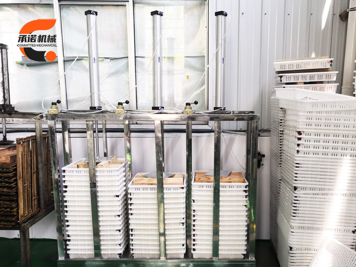 水豆腐壓機配備有不銹鋼套框,不銹鋼壓板(沖孔),搭配80*800型氣缸,采用不銹鋼制造,堅固耐用,壓力足,是商丘承諾豆腐機械設(shè)備有限公司的產(chǎn)品之一。